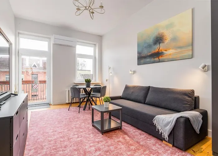 Charming Apartment In Kaunas Old Town erbjuder ett utrustat kök samt ugn och diskmaskin för gästernas komfort. Den närmaste busshållplatsen är Rotuses aikste, som ligger mindre än 400 meter bort.